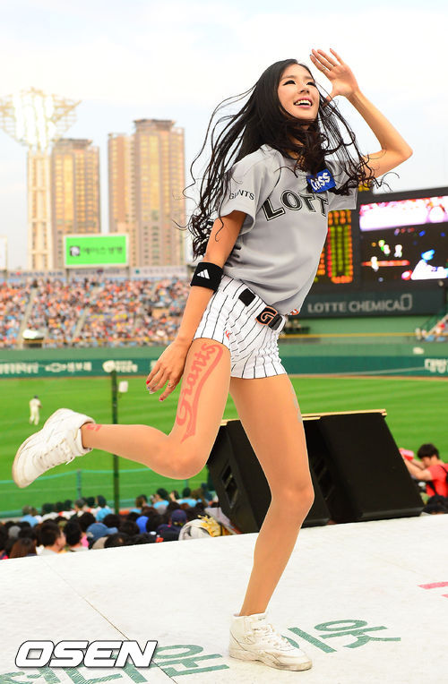 26일 오후 부산 사직구장에서 열린 2013 한국야쿠르트 세븐프로야구 롯데 자이언츠와 NC 다이노스의 경기, 롯데 치어리더 박기량이 화려한 공연을 펼치고 있다.