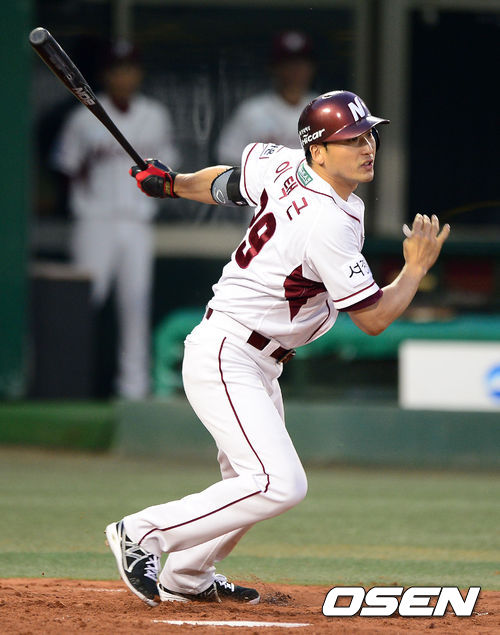 26일 오후 서울 목동야구장에서 열린 '2013 한국야쿠르트 세븐 프로야구' 넥센 히어로즈와 SK 와이번스의 경기, 5회말 1사 3루에서 넥센 이택근이 1타점 우전 적시타를 날리고 타구를 바라보고 있다.