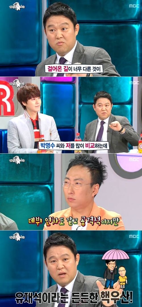 김구라는 "박명수는 유재석이라는 핵우산이 있다. 핵우산 아래서 어려움이 없다. 난 어려움을 겪으면서 스토리가 있다"고 말했다.