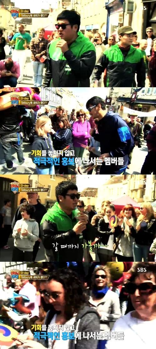 한편 이날 '우리가 간다'의 전현무, 윤태영, 박효준, 서지석, 백성현 다섯 남자가 아시아 최초로 30kg의 양털 포대를 매고 경사 40도의 오르막과 내리막 220m의 거리를 달리는 영국의 글로스터 주 테트버리의 월드 챔피언십 울색(양털 포대) 레이스에 도전했다.