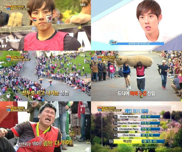 백성현은 26일 오후 방송된 SBS 파일럿 예능프로그램 '월드 챌린지-우리가 간다'('우리가 간다')에서 영국 글로스터 주 테트버리의 올색 레이스에 도전, 뛰어난 정신력으로 5위 기록을 세웠다.