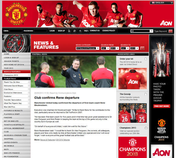 맨체스터 유나이티드 공식 홈페이지 캡처.