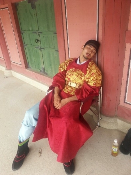 사진 속 임슬옹은 극중 12대 왕에 등극한 후 곤룡포를 입고 있는 모습이다. 하지만 임슬옹은 왕의 체통을 잊은 듯 의자에 앉아 비스듬한 자세로 잠을 청하고 있어 웃음을 자아낸다.
