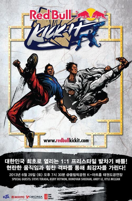 한국에서 처음으로 열리는 레드불 킥잇은 오는 6월 29일 올림픽공원 K-아트홀 태권도공연장에서 열린다. 6시부터 예선전을 시작하며, 본선전은 오후 7시 반부터 9시 반까지 진행된다.