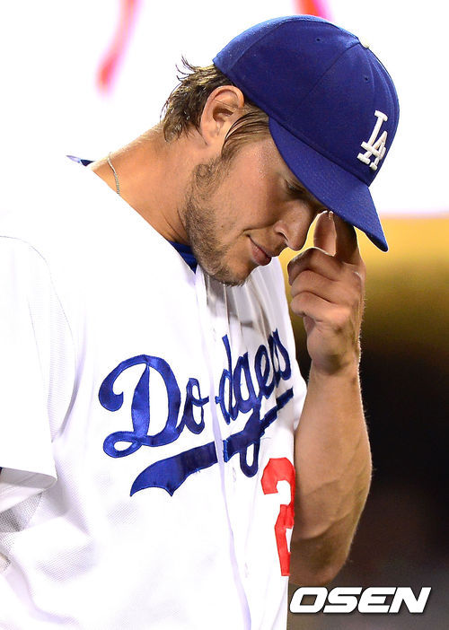 [OSEN=로스앤젤레스, 곽영래 기자] 27일(한국시간) 미국 캘리포니아주 로스앤젤레스 다저 스타디움에서 열린 2013 미국 메이저리그 LA 다저스와 샌프란시스코 자이언츠의 경기,4회초 역전 2점 홈런을 허용한 다저스 선발투수 커쇼가 이닝종료 후 더그아웃으로 들어가고 있다