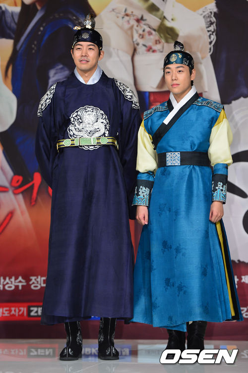 배우 이상윤과 노영학이 27일 오후 서울 영등포 타임스퀘어 아모리스홀에서 열린 MBC 월화드라마 '불의 여신 정이' 제작발표회에 참석해 포토타임을 갖고 있다.