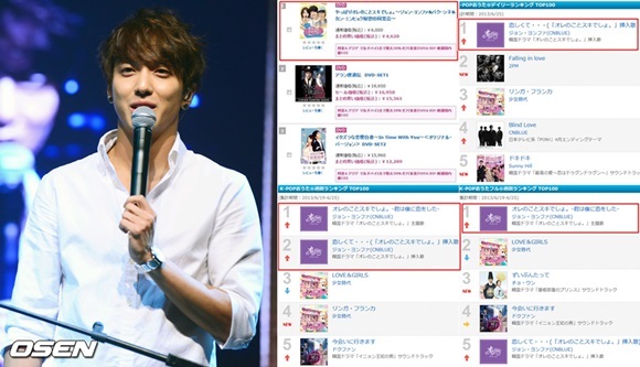 지난 3월에도 '넌 내게 반했어' OST는 동사이트 K-POP OST부문 벨소리 차트 1위를 휩쓸었는데, OST 뿐 아니라 '넌 내게 반했어' DVD도 같은 시기 일본 대형 음반유통업체 HMV CD/DVD/Blue-ray부문 한국-아시아 주간 종합 판매 1위를 차지했다.