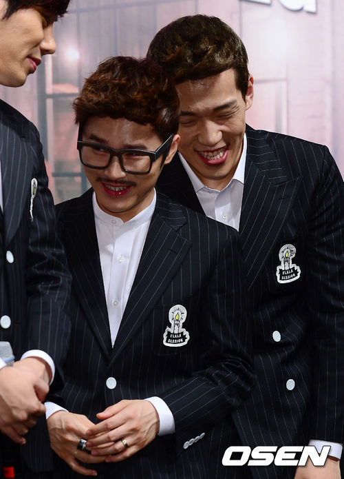 울랄라세션 김명훈과 박광선이 27일 오후 서울 연건동 홍익대학교 대학로 아트센터에서 열린 쇼케이스에서 기자간담회 시간을 마치고 무대를 나가고 있다.