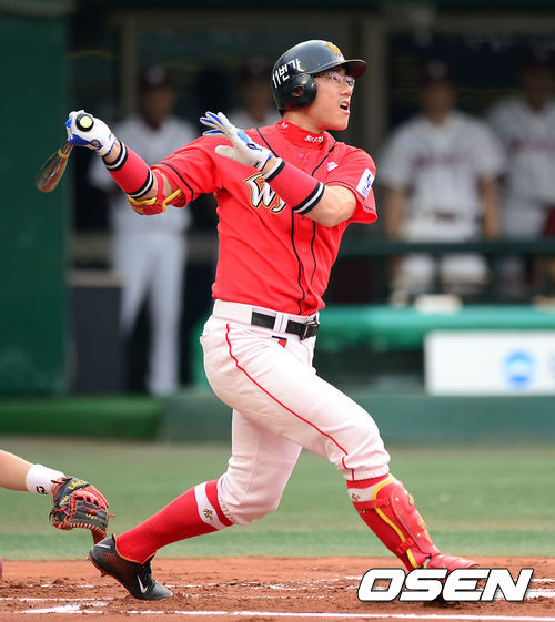 27일 오후 서울 목동야구장에서 열린 2013 한국야쿠르트 세븐프로야구 넥센 히어로즈와 SK 와이번스의 경기, 1회초 1사 1,2루에서 SK 박정권이 우월 스리런 홈런을 치고 있다.