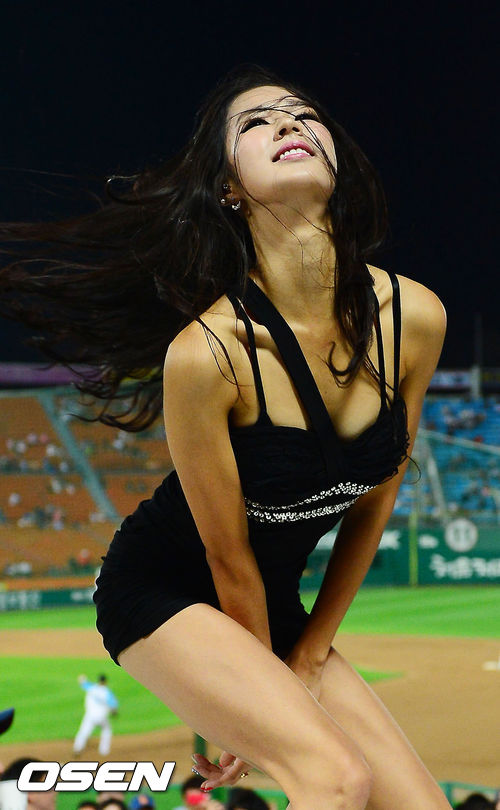 27일 오후 부산 사직구장에서 열린 2013 한국야쿠르트 세븐프로야구 롯데 자이언츠와 NC 다이노스의 경기, 롯데 치어리더 박기량이 화려한 공연을 펼치고 있다.
