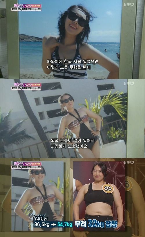 이날 이희경은 “‘헬스걸’하고 나서 언제 다시 요요현상이 올지 몰라 난생 처음으로 수영복을 입어봤다”고 말했다.
