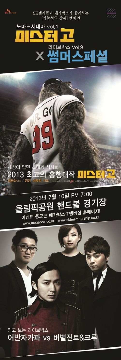 SK텔레콤이 멤버십 회원들을 대상으로 시사회와 콘서트가 결합한 문화행사를 개최한다. SK텔레콤은 7월 10일 올림픽공원 SK핸드볼경기장에서 진행하는 영화 '미스터 고'의 초대형 시사회와 어반자카파, 버벌진트, 범키, 스윙스 등이 참여하는 인디음악 콘서트에 SK텔레콤 이용자들을 초대한다고 28일 밝혔다.