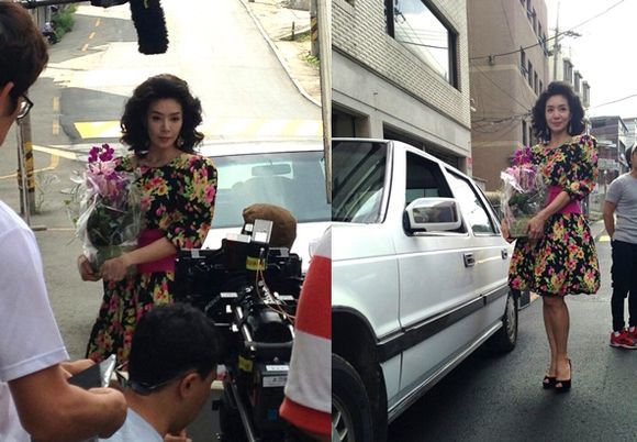 최근 공개된 촬영현장 사진들에서 김혜리는 1980년대를 대변하는 일명 ‘각 그랜저’ 앞에서 세월을 거스르는 모습으로 연기에 임하고 있다.