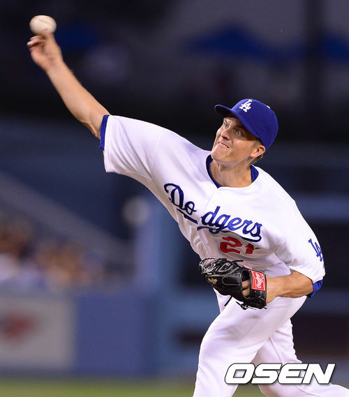[OSEN=로스앤젤레스, 곽영래 기자] 28일(한국시간) 미국 캘리포니아주 로스앤젤레스 다저 스타디움에서 열린 2013 미국 메이저리그 LA 다저스와 필라델피아 필리스의 경기, 4회초 다저스 선발투수 그레인키가 역투하고 있다