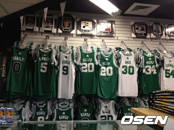 보스턴 TD가든에서 판매되는 케빈 가넷과 폴 피어스의 유니폼 / 서정환 기자