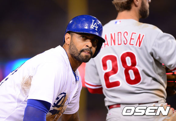 8회말 다저스 맷 켐프가 3루 도루 성공한 후 더그아웃을 바라보고 있다. / soul1014@osen.co.kr