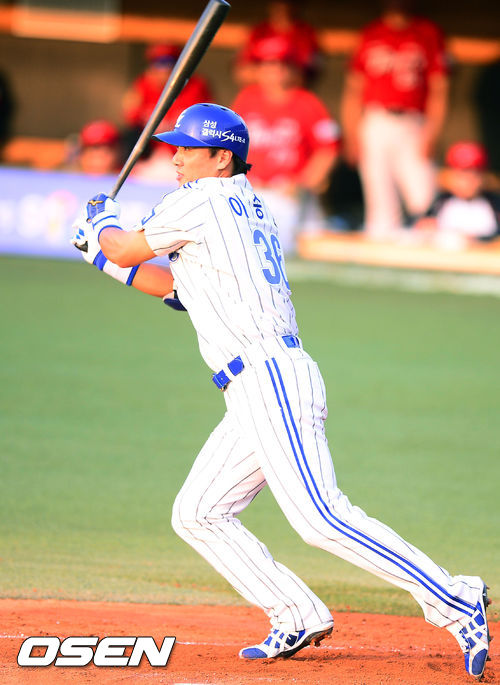 28일 오후 대구 시민운동장에서 열린 2013 한국야쿠르트 세븐프로야구 삼성 라이온즈와 KIA 타이거즈의 경기, 1회말 2사 주자 없는 상황에서 삼성 이승엽이 중견수 앞 안타를 날리고 있다.