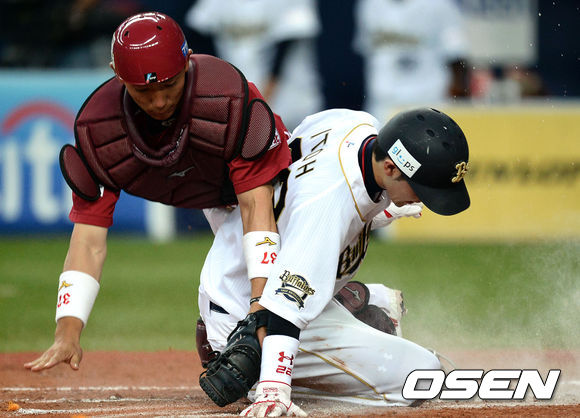6회말 1사 3루, 3루주자 오릭스 이토가 슌타의 우익수 희생플라이때 홈으로 쇄도해 득점을 올리고 있다.