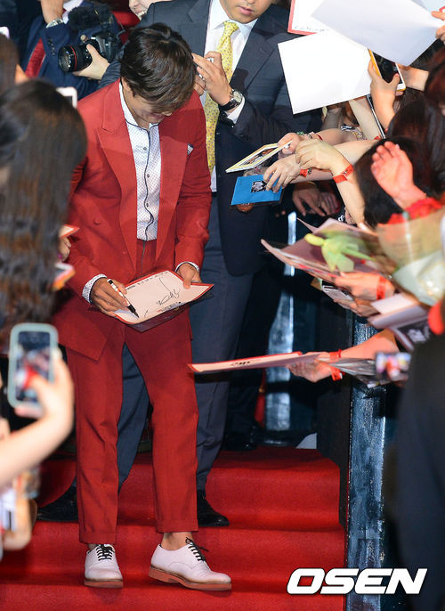 28일 오후 서울 광장동 쉐라톤 워커힐에서 진행된 영화 '레드:더 레전드' 쇼케이스에서 이병헌이 팬들에게 사인을 해주고 있다.