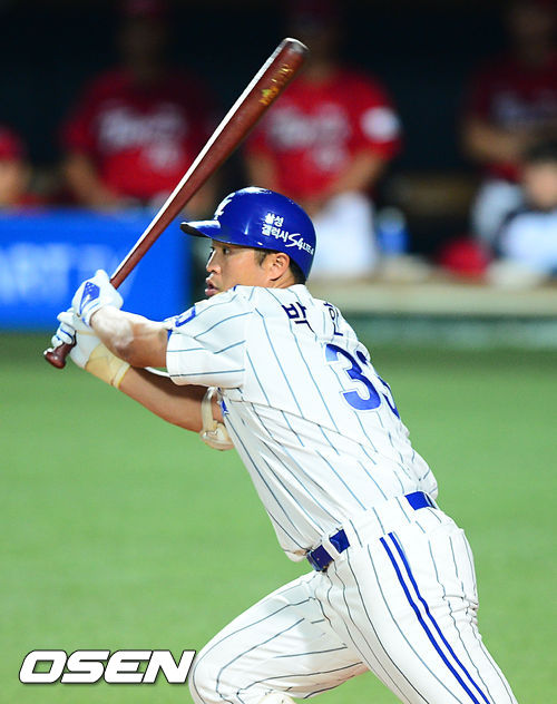 28일 오후 대구 시민운동장에서 열린 2013 한국야쿠르트 세븐프로야구 삼성 라이온즈와 KIA 타이거즈의 경기, 9회말 1사 주자 3루 삼성 박한이가 1타점 적시타를 날리고 있다.