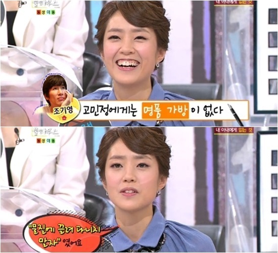 이에 고민정 아나운서는 "시간이 흐를수록 드는 생각은 '내가 물질에 끌려다니지 말자'였다. 내가 계속 끌려다니면 그 물질보다 나은 게 뭔가 싶었다. 명품백 100만원 짜리를 하나 사느니 10만원 짜리 10개를 사서 들고 다니는 게 더 행복할 것 같다"고 자신의 소신에 대해 전했다.