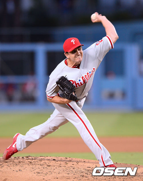 [OSEN=로스앤젤레스, 곽영래 기자] 29일(한국시간) 미국 캘리포니아주 로스앤젤레스 다저스 스타디움에서 열린 2013 미국 메이저리그 LA 다저스와 필라델피아 필리스의 경기, 3회말 필라델피아 존 래난이 역투하고 있다.
