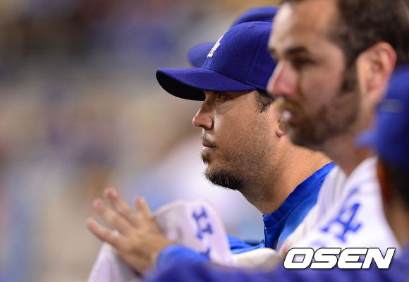 [OSEN=로스앤젤레스, 곽영래 기자] 29일(한국시간) 미국 캘리포니아주 로스앤젤레스 다저스 스타디움에서 열린 2013 미국 메이저리그 LA 다저스와 필라델피아 필리스의 경기, 손가락 마비 증세로 전열에서 이탈했던 조쉬 베켓이 경기를 지켜보고 있다.