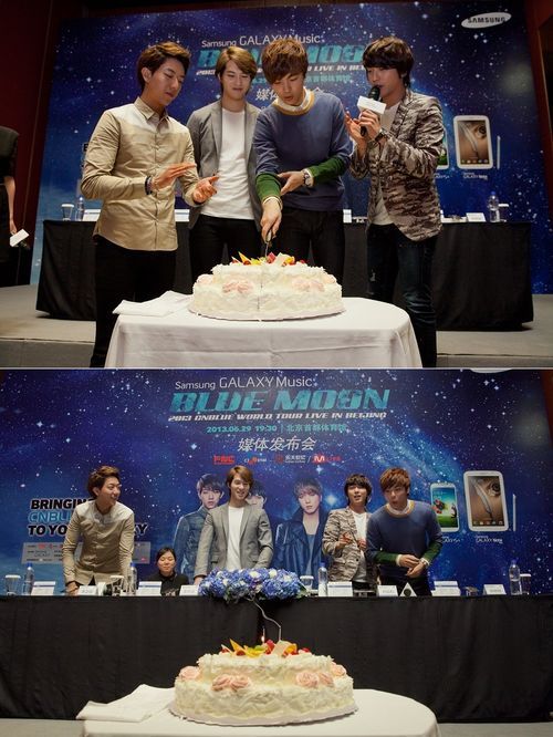 베이징 공연을 하루 앞둔 28일 중국 현지 기자단들과 가진 기자 회견에서 씨엔블루는 기자회견 당일 생일을 맞은 멤버 강민혁의 생일 축하 이벤트를 펼쳤다.