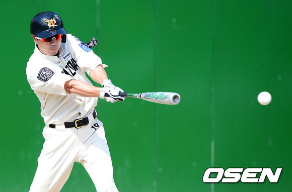 29일 오후 경기도 김포시 송일야구장에서 열린 '제4회 니베아 맨 컵 전국생활체육 야구대회' 32강 조마조마와 장작불야구단의 경기, 1회말 무사 3루에서 조마조마 성대현이 선제 1타점 적시타를 날리고 있다.