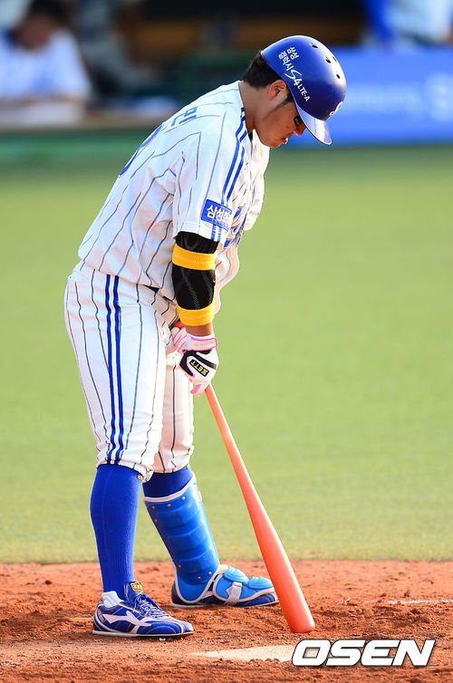 29일 오후 대구 시민운동장에서 열린 2013 한국야쿠르트 세븐프로야구 삼성 라이온즈와 KIA 타이거즈의 경기, 3회말 2사 주자 3루 삼성 박석민이 좌월 홈런성 파울 타구를 날린 후 아쉬워하고 있다.