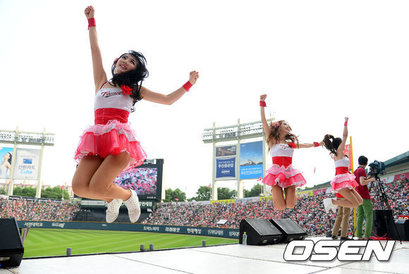 29일 오후 서울 잠실야구장에서 열린 2013 한국야쿠르트 세븐프로야구 LG 트윈스와 SK 와이번스의 경기, LG 치어리더가 화려한 공연을 펼치고 있다.