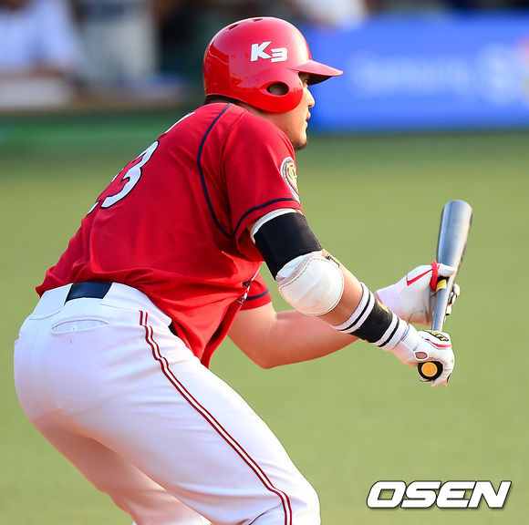 29일 오후 대구 시민운동장에서 열린 2013 한국야쿠르트 세븐프로야구 삼성 라이온즈와 KIA 타이거즈의 경기,4회초 선두타자 KIA 최희섭이 기습 번트를 시도하고 있다. 이 번트는 파울 처리됐다.