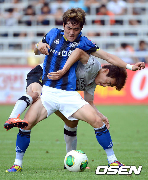 경기후반, 인천 이석현과 포항 신진호가 볼다툼을 하고 있다. /ouxou@osen.co.kr