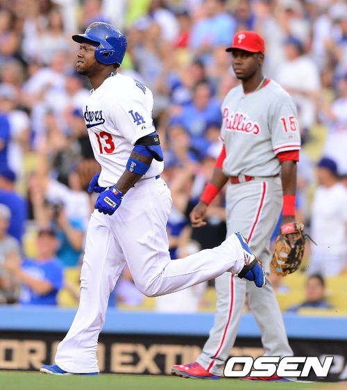 [OSEN=로스앤젤레스, 곽영래 기자] 30일(한국시간) 미국 캘리포니아주 로스앤젤레스 다저 스타디움에서 열린 2013 미국 메이저리그 LA 다저스와 필라델피아 필리스의 경기, 1회말 1사 1,2루서 스리런 홈런을 친 헨리 라미레즈가 힘차게 베이스를 돌고 있다.
