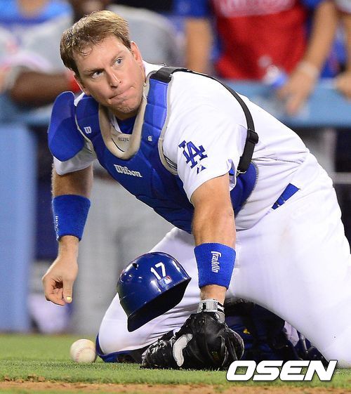 9회초 A.J. 엘리스가 어이없는 실책으로 류현진의 승리를 날리고 있다./ soul1014@osen.co.kr