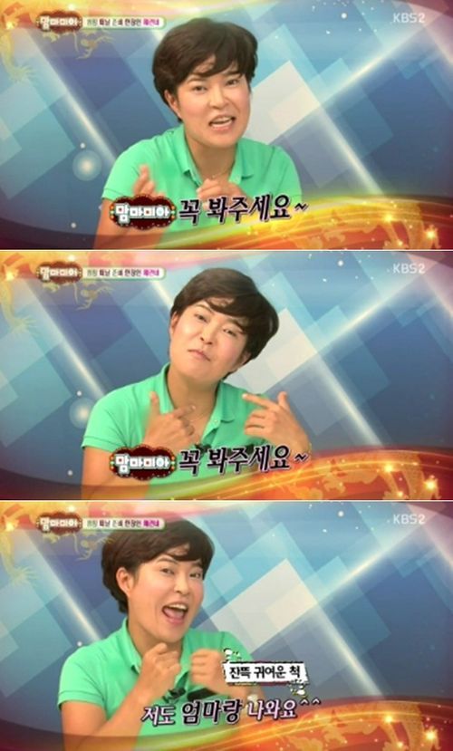 이어 제작진이 공개한 VCR에서 조혜련은 '인민왕' 녹화 중 "현재 '맘마미아'에 엄마하고 같이 나온다. 꼭 봐달라"며 귀여운 제스처와 표정으로 홍보에 나서 눈길을 끌었다.