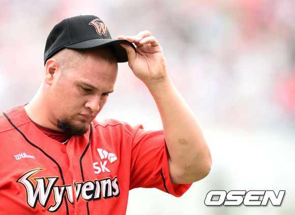 30일 오후 서울 잠실야구장에서 열린 '2013 한국야쿠르트 세븐 프로야구' LG 트윈스와 SK 와이번스의 경기, 1회말 수비에서 1실점을 허용한 SK 레이예스가 아쉬운 표정을 지으며 더그아웃으로 향하고 있다.