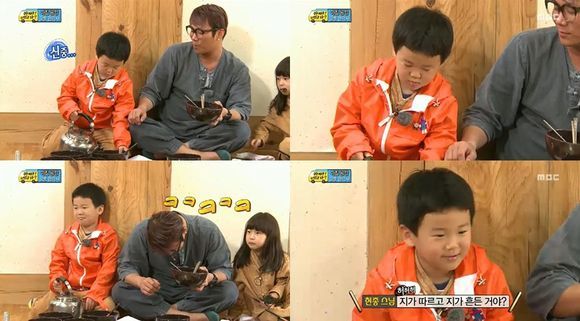 윤후는 30일 오후 방송된 MBC 예능프로그램 ‘일밤-아빠 어디가(이하 ’아빠어디가‘)’에서 아침 공양 시간에 숭늉을 자기 그릇에 따르며 의도치 않게 몸개그를 선보여 보는 이들을 폭소케 했다.