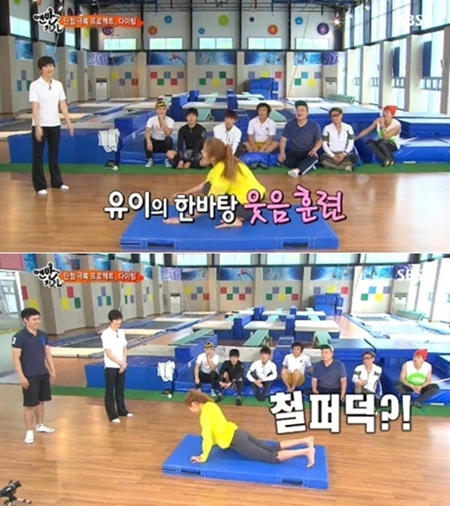 그러나 유이는 순서를 외웠지만 뻣뻣한 몸동작으로 웃음을 자아냈다. 수영선수 출신인 유이는 매트에 철퍼덕 넘어지는가 하면 팔굽혀펴기를 못해 몸 풀기 체조를 제대로 소화하지 못했다.