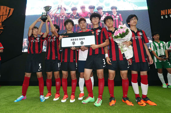 지난 5월 부터 ‘나이키 컵 247’ 스마트폰 앱을 통한 지역예선과 서울, 대구, 부산에서 펼쳐진 지역 결선을 거쳐올라온 총 32개의 최종 결선 진출팀은‘나이키 컵 247’최종 결선 무대인 잠실 아이스링크 특별 축구 경기장에서 토너먼트 방식을 통해 우승팀을 선발했다. 중등부, 고등부 우승팀은 영국 맨체스터유나이티드 사커스쿨 참여와 EPL 정규 시즌 경기를 직접 관람할 수 있는특전이 주어졌다.