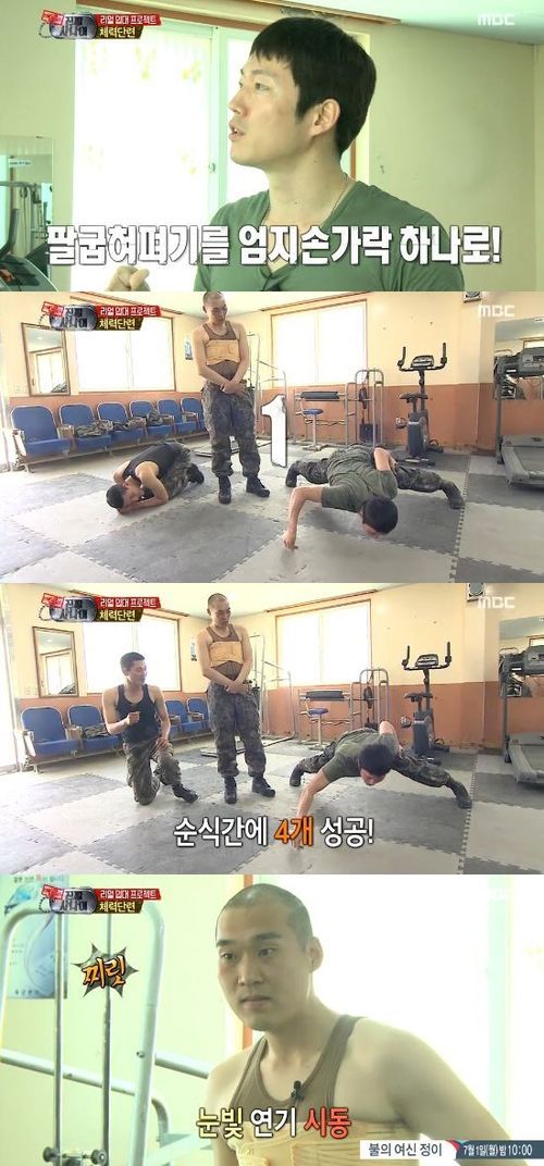 배우 장혁이 한 손가락 푸시업에 성공해 전우들을 놀라게 했다.