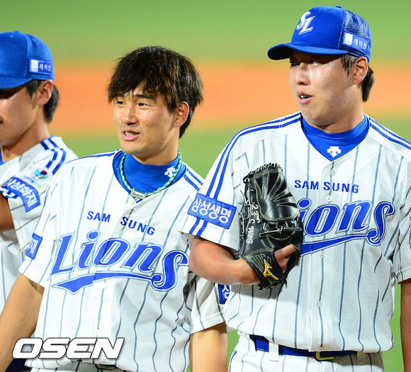 경기를 마치고 삼성 김상수가 차우찬이 팬들의 환호성에 놀라고 있다. / rumi@osen.co.kr