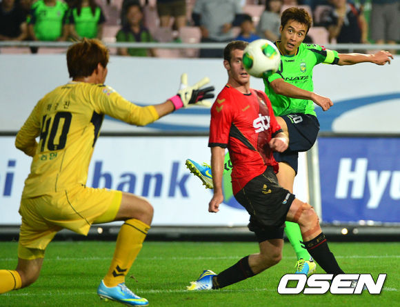 30일 오후 전주월드컵경기장에서 '2013 현대오일뱅크 K리그 클래식' 15라운드 전북 현대와 경남 FC 경기가 열렸다. 후반 전북 이동국이 팀의 네번째 골이자 자신의 두 번째 골을 작렬시키고 있다. 이동국의 K리그 150번째 골.