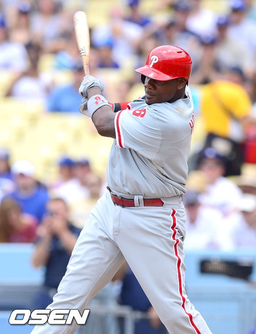 2[OSEN=로스앤젤레스, 곽영래 기자] 1일(한국시간) 미국 캘리포니아주 로스앤젤레스 다저 스타디움에서 열린 2013 미국 메이저리그 LA 다저스와 필라델피아 필리스의 경기, 1회초 2사 3루 필라델피아 하워드가 내야땅볼 타구를 날리고 있다