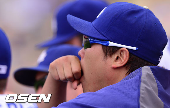 9회초 다저스 류현진이 하품을 하며 경기를 지켜보고 있다 / soul1014@osen.co.kr