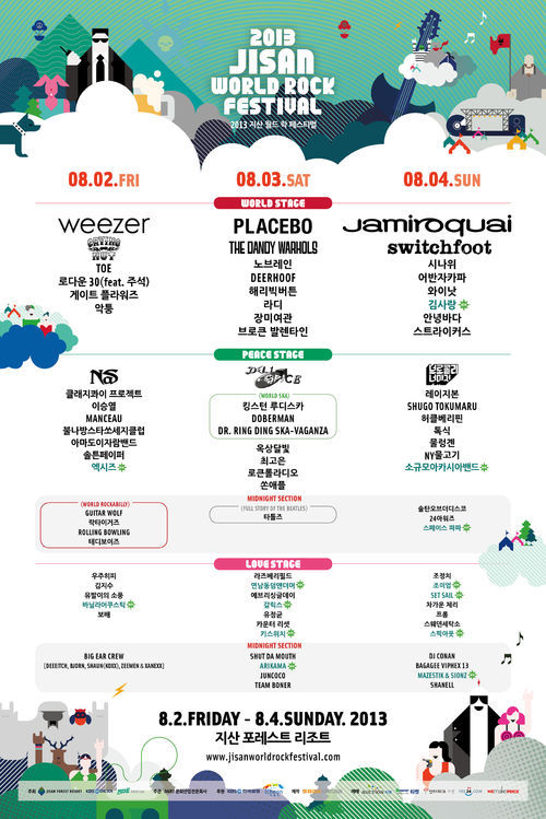 오는 8월 2일부터 4일까지 총 3일간 경기도 이천에 위치한 지산 포레스트 리조트에서 개최되는 '2013 지산 월드 락 페스티벌(www.jisanworldrockfestival.co.kr)'이 13팀의 최종 5차 라인업을 추가 발표하며 총 81팀의 아티스트 라인업을 확정했다.
