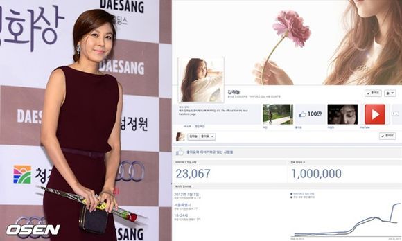 김하늘의 공식 페이스북은 1일 현재 100만이 훌쩍 넘는 팬들의 '좋아요'를 받았다. '좋아요'란 페이스북 이용자들이 자신이 선호하는 인물의 페이지에 그 표시를 남기는 것으로 한 이용자 당 한 번의 '좋아요'를 클릭할 수 있다. 즉 이는 김하늘의 페이스북을 좋아하는 이가 100만이 넘는 다는 것.