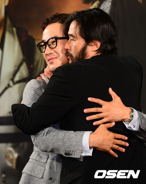 엄태웅과 최민수가 포옹을 하며 포토타임을 하고 있다.