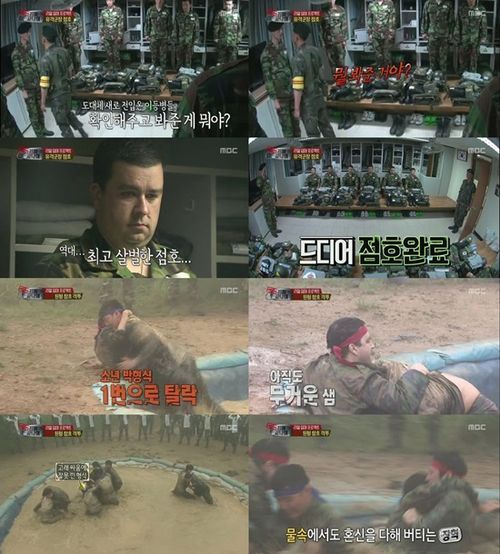 군 생활에서 가장 힘든 훈련 중 하나로 손꼽히는 유격 훈련 이야기가 펼쳐진 지난 16일 방송분에서 최고의 1분은 유격 훈련 후반부에 펼쳐진 유격 돌격형 참호 격투였다. 특히 이 중에서도 원형 참호 격투가 최고 시청률 1분의 영광을 차지했다. 이날 참호 격투에서 에이스로 기대를 모은 장혁은 오히려 집중 견제를 받으며 어려운 몸싸움을 이어나갔고, 샘 해밍턴은 자신의 체중을 이용해 의외(?)로 막강한 전력(?)을 과시했다. 강인한 체력을 과시하던 류수영 역시 집중 견제 속에 어려움을 겪었지만 사력을 다했고, 박형식은 초보 병사의 한계를 넘지 못하고 일찌감치 탈락했지만 하는 동안 최선을 다하며 멋진 모습을 선사했다.