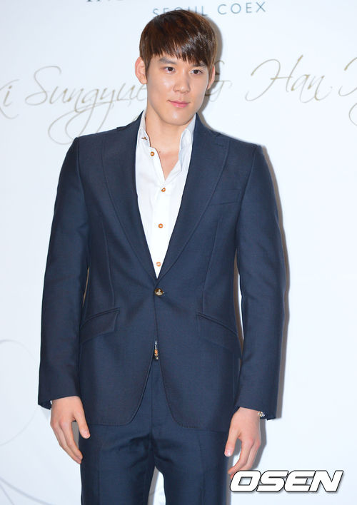 수영선수 박태환이 기성용-한혜진의 결혼식에 참석해 포토타임을 갖고 있다.